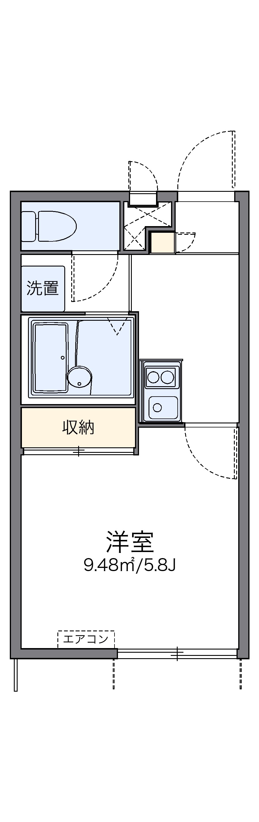 1K / 207号室 / 2th floor / 20.28m²