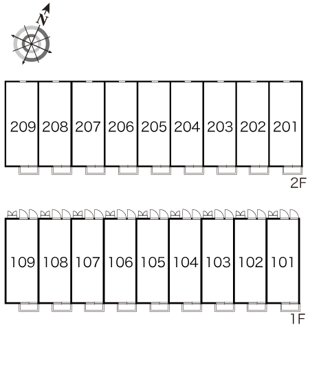 1K / 209号室 / 2th floor / 26.08m²