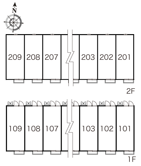1K / 208号室 / 2th floor / 26.08m²