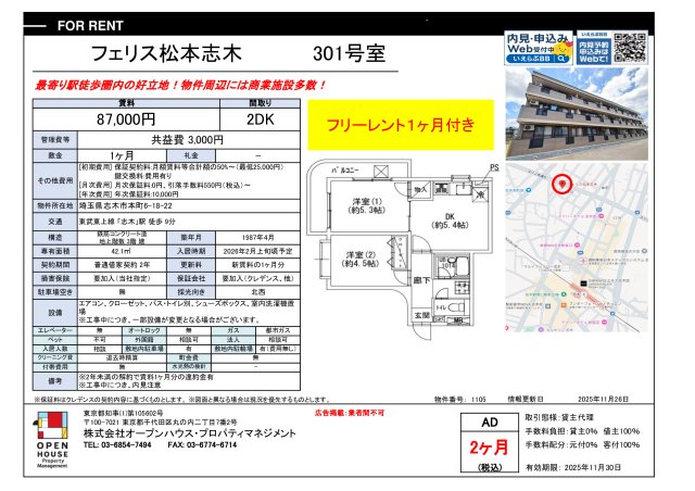 | Parking lot | Available (1 vehicle) 14300 yen |