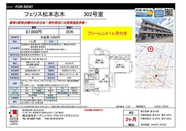 | Parking lot | Available (1 vehicle) 14300 yen |