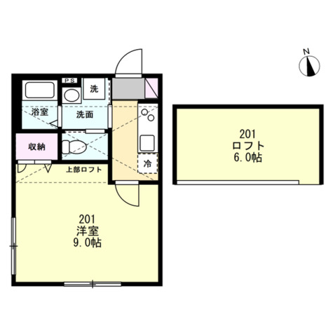 1K / 203号室 / 2th floor / 26.75m²
