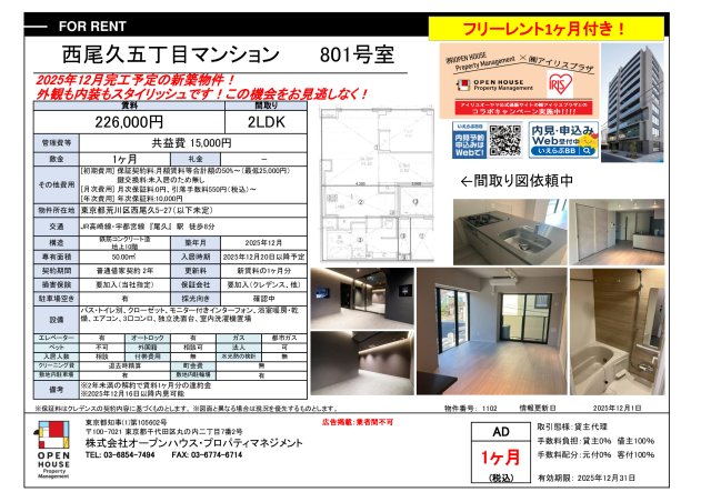 マンション 荒川区西尾久五丁目PJ 801