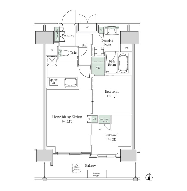 29.76㎡ 2LDK K