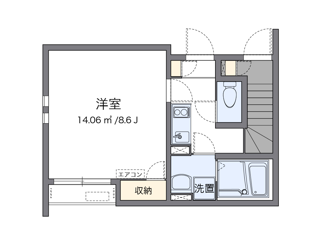 1K / 1階 / 25.18m²