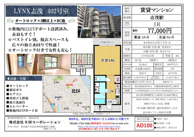 マンション LYNX志茂 の物件詳細ページ。全国の賃貸物件外国人向けの賃貸情報・留学生向け専用のお部屋探しならYOLO HOME!