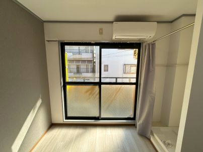 1Kタイプ 改修の際に洗濯機置き場を室内に移動しました クローゼットはカーテンで間仕切るオープンクロ