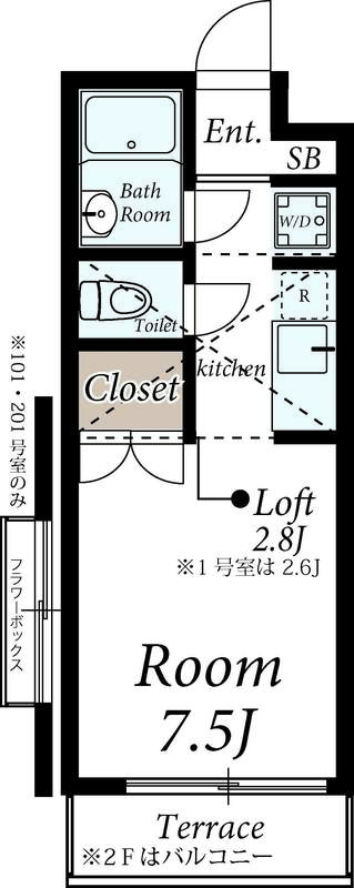 1R / 2階 / 19.48m²