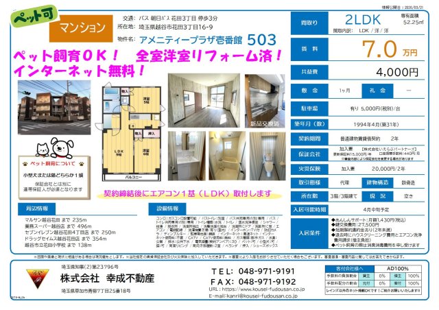 | 駐車場 | 空有 (1台) 5500円 |