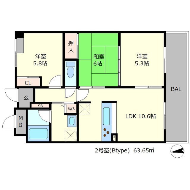 3LDK / 5階 / 63.65m²