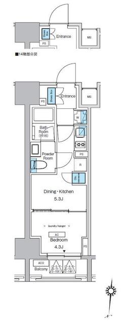 Bố trí nhà ở 1DK / 14 tầng