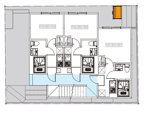 | Bố trí nhà ở | 1K / 3 tầng |