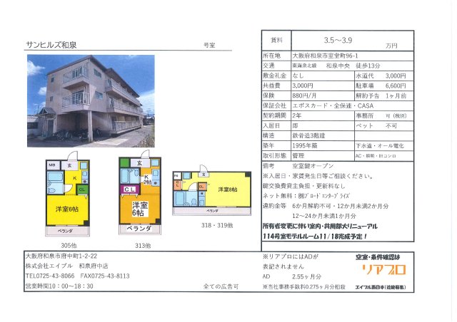 楼房サンヒルズ和泉 206 的详细信息页面。如果您正在寻找面向外国人的房屋出租信息以及留学生专用的房间的话,YOLO HOME!