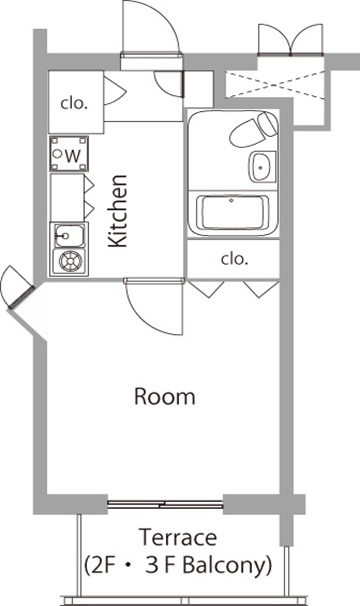 1K / 2楼 / 19.14m²