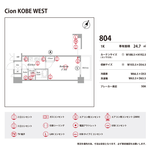 楼房Cion KOBE WEST 0804 的详细信息页面。如果您正在寻找面向外国人的房屋出租信息以及留学生专用的房间的话,YOLO HOME!